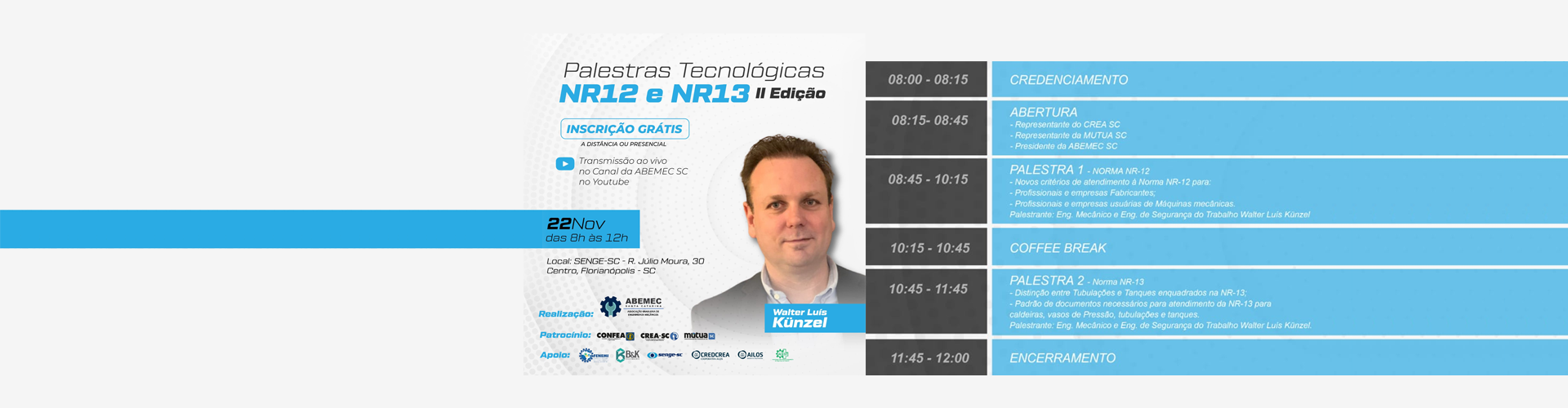 Os profissionais da Engenharia Mecânica e Industrial do estado de Santa Catarina são bem representados pela ABEMEC-SC que tem cadeira efetiva no Conselho do CREA-SC, trazendo credibilidade para a entidade.